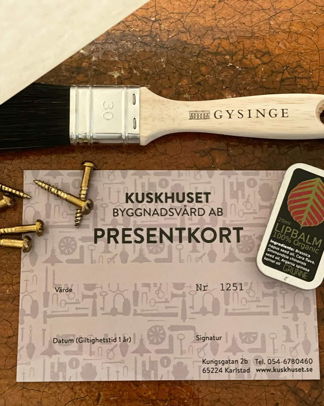 Presentkortet gäller i ett år från aktivering/beställning för köp i vår fysiska butik i Karlstad.
